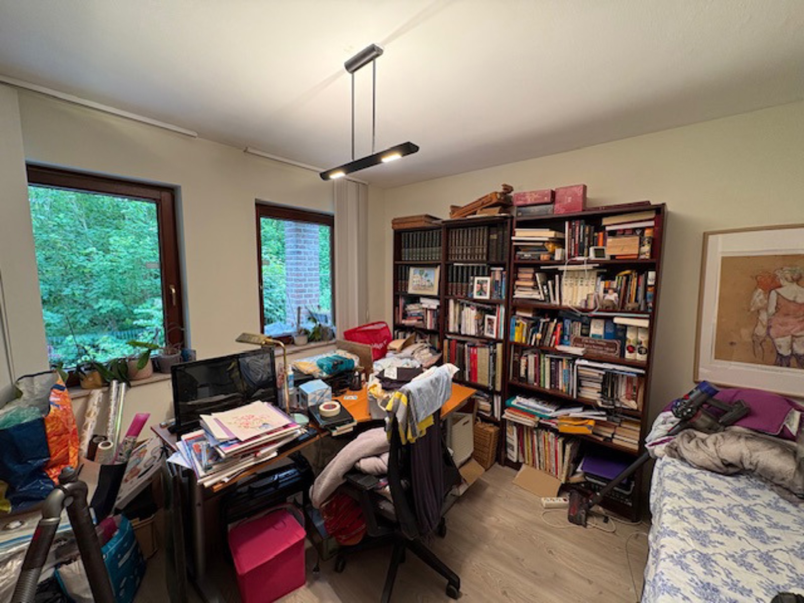 Le hall d'entrée / hall de nuit avec wc donne accès au bureau (7m2) à la salle de bain (8.5m2), au 2 chambres (12m2x2), à la buanderie (5m2) et à la cave (10m2).