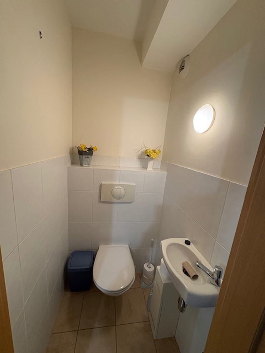 Il est composé d'un hall d'entrée avec wc, un grand living, cuisine équipée avec terrasse, buanderie, un hall de nuit, 2 chambres, une salle de bain et au sous sol 1 cave.