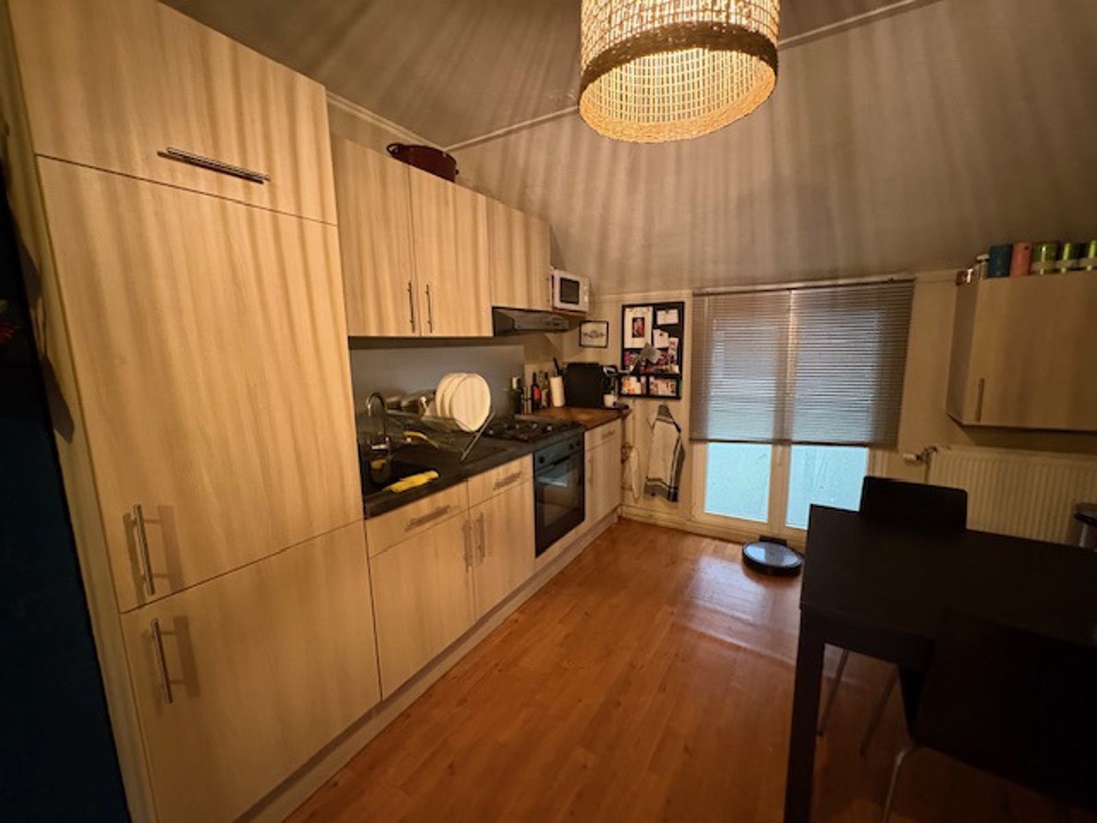 L'appartement du 1ier étage dispose d'une grande pièce salon-salle à manger et cuisine, 1 chambre, 1 salle de bain, une buanderie/chaufferie sur le palier