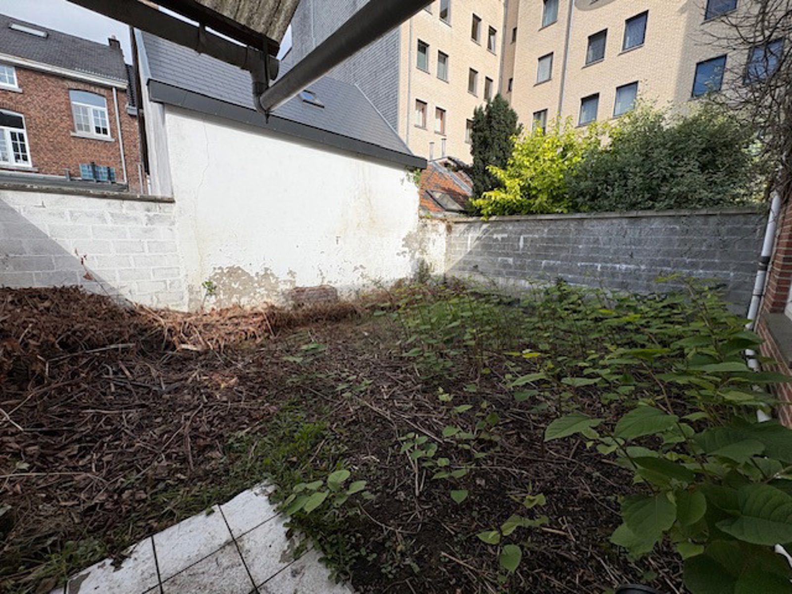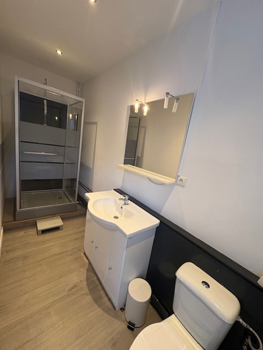 L'appartement arrière dispose d'un living/cuisine, 1 salle de bain avec baignoire d'angle, 1 chambre.