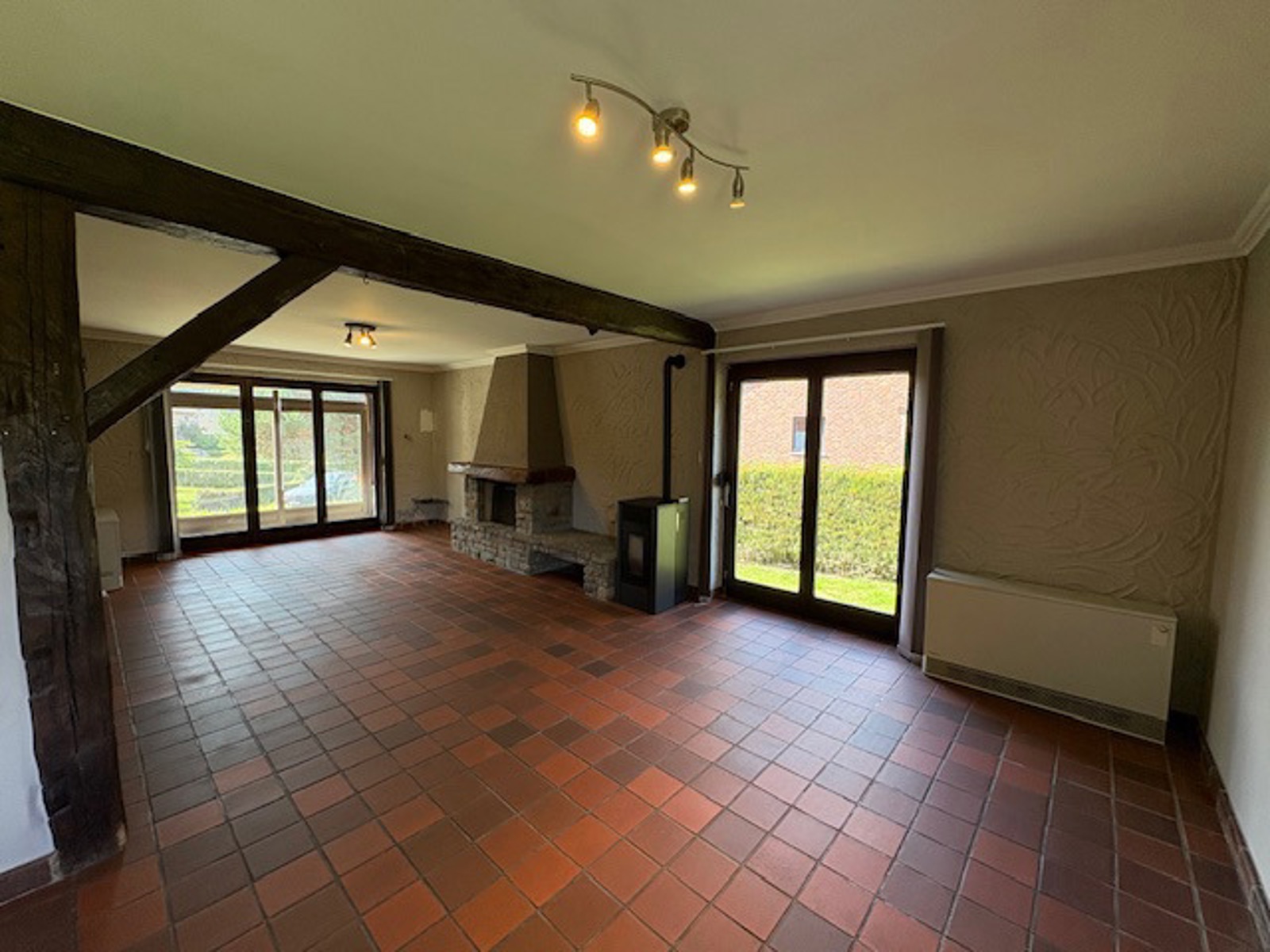 Au rez de chaussée: d'un hall d'entrée précédé d'une véranda sur l'avant du bâtiment, d'un grand living en L avec âtre et poêle à pellets, une cuisine équipée,